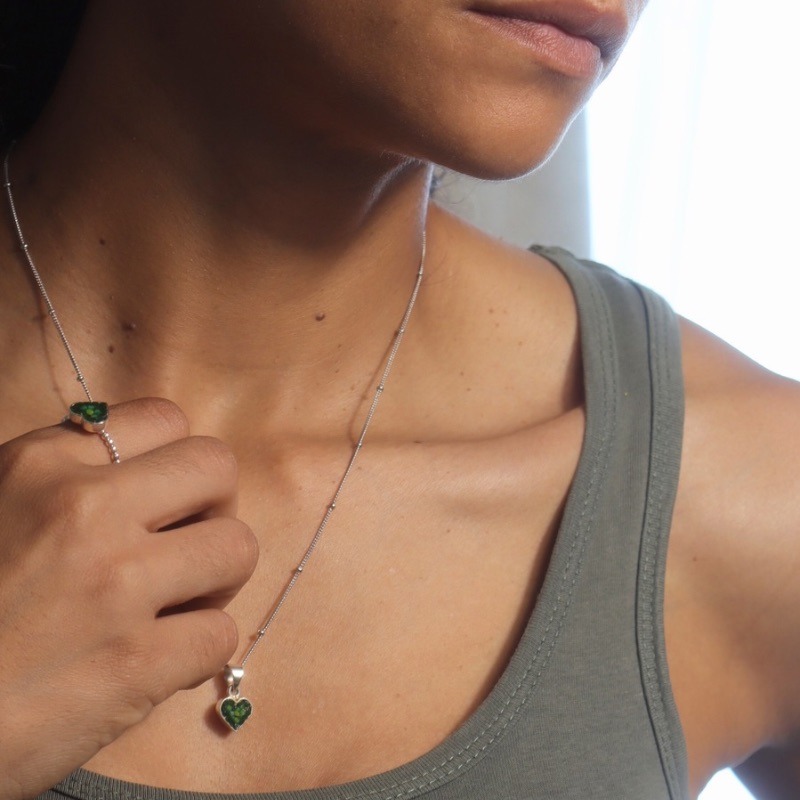 Sterling Silver Heart Pendant set with green ombré micro mosaics.